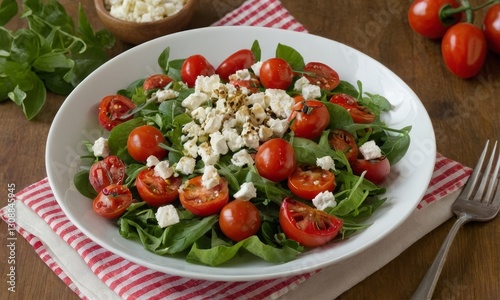 Fresh and Delicious Salad with Tomatoes, Arugula, and Feta Cheese Delight