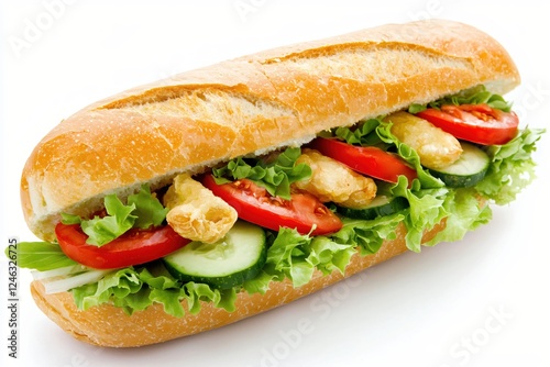 Fresh and Delicious Sub Sandwich with Lettuce Tomato Cucumber and Crispy Chicken Pieces