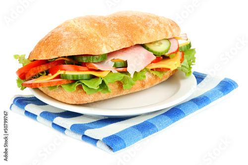 Fresh and tasty sandwich with ham and vegetables isolated