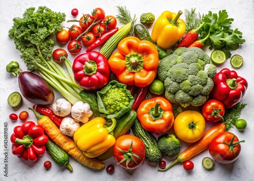 vegetable, fresh vegetable, produce, farm fresh, health food, food photography, white background, tomatoes, cucumber, broccoli, lettuce, carrot, pepper, bell pepper, healthy eating, diet food, cooking ingredient, farmers market, food market, food, nourishment, vitamin, delicious, appetising, fresh produce, hi-res, topview, healthy lifestyle