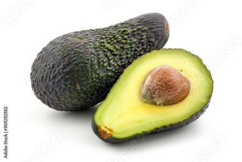 Fresh avocado cut in half with a whole one next to it, great for food or healthy living concepts