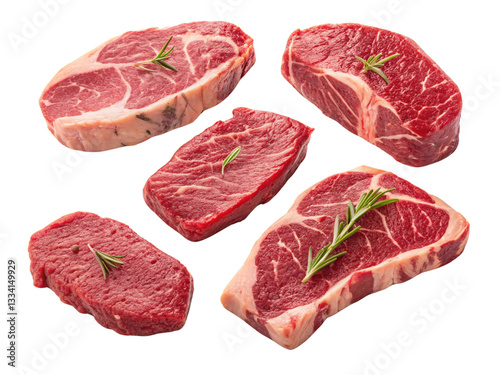Fresh beef cuts with rosemary garnish, ideal for grilling or cooking