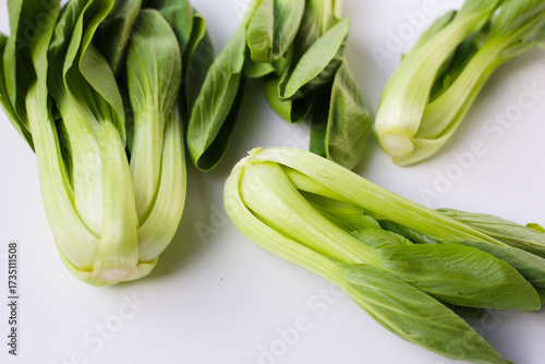 Fresh bok choy on white background.