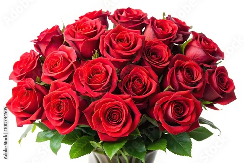 Fresh bouquet of red roses on white background