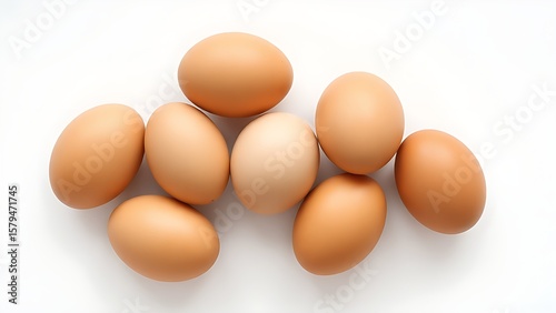 Fresh brown eggs with natural texture, isolated on a pure white background under soft overhead lighting.