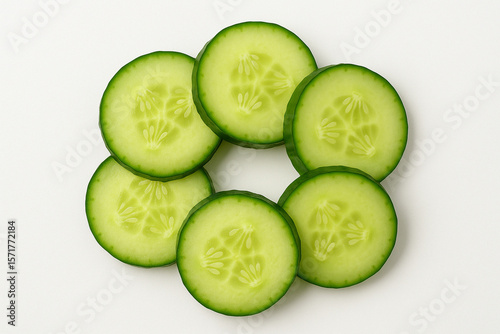 Fresh Cucumber Slices Arranged in a Circle on White Background