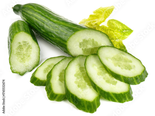 Fresh Cucumber Slices isolated on white Background