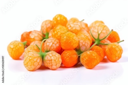 Fresh dessert cloudberry, isolate on white background. Macro studio shot. AI generated.