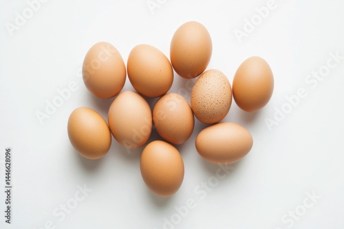 Fresh eggs clustered on white background