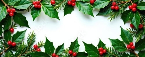 Fresh evergreen branches forming a festive holly border, Nature, Holiday Season
