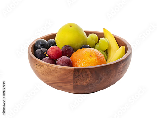 Fresh fruit in wooden bowl. Healthy eating concept.