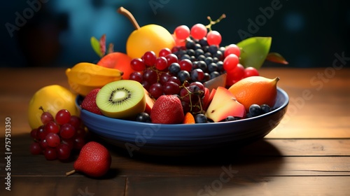 Fresh fruits in a bowl on a wooden table, closeup. Healthy food