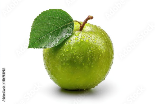 apple, green, fruit, healthy, fresh, organic, juicy, nature, food, nourishment, vitamin, diet, healthy eating, vitamin, nutrient, clean, water droplets, leaf, stem, studio, photo, food photography, picture, fresh fruit, single, 1, bright, lighting, white, background, closeup, isolated, produce, ripe, sweet, tasty, delicious, eating, vitamin c, organic food, green apple, seasonal, healthy snack