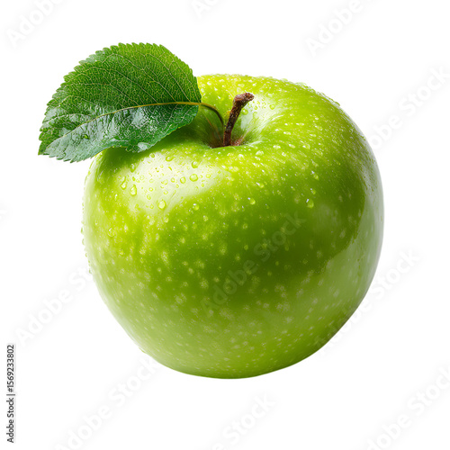 apple, green apple, granny smith apple, fruit, fresh, healthy, food, isolated, black background, water droplets, leaf, single object, macro, closeup, wet, juicy, organic, nourishment, ripe, vibrant, dessert, snack, natural, background, studio shot, delicious, freshness