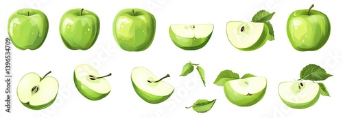 Fresh Green Apples and Slices