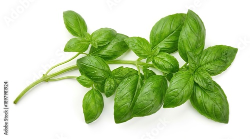 Fresh green basil leaves arranged elegantly on a clean background showcasing their vibrant color and texture on white and transparent