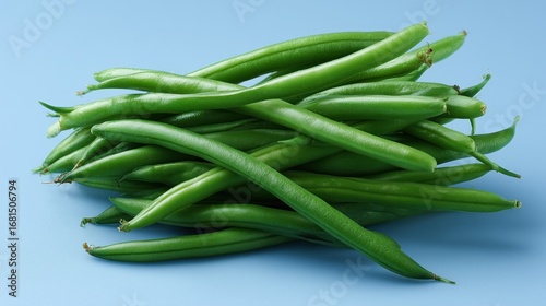 Fresh Green Beans on Blue Background for Culinary and Design Projects