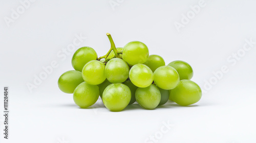 Fresh green grapes arranged beautifully on white background, showcasing their vibrant color and natural shine. Perfect for healthy snacking or culinary use.