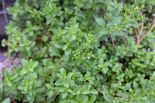 Fresh green leaves of stevia plant.