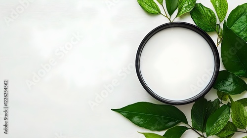 Fresh Green Leaves Surrounding Empty White Circular Frame