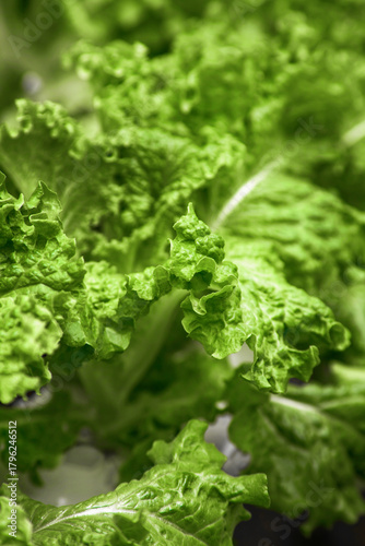 Fresh green lettuce leaves growing in a hydroponic farm