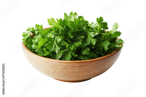 Fresh green parsley herb in a bowl isolated on transparent background. Green parsley in a bowl isolated on white background.
