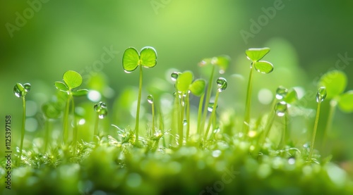 sprout, green, fresh, water droplets, sunlight, nature, growth, vibrant, dew, morning, plant, natural, bright, healthy, agriculture, environment, organic, freshness, life, garden, leaf, sunlit, wet, glistening, botanical, hydratation, spring, foliage, environmentally friendly, vegetation, crisp, farming, tender, vitality, glowing, clean, pure, sustainable, soft light, radiant