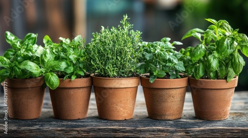 herb, plant, terracotta, pot, garden, kitchen, cooking, vegetable, fresh, organic, basil, thyme, oregano, mint, food, healthy, rustic, natural, nature, home, decor, table, wooden, display, arrangement, ingredient, culinary, flavorful, aroma, spice, growth, growing, farmhouse, summer, spring, autumn, healthy eating, freshness, delicious, vibrant, aromatic, green, tasty