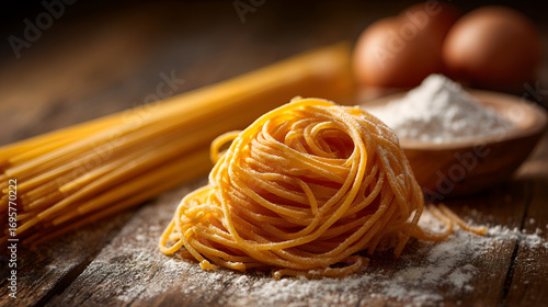 pasta, homemade, italian, food, ingredient, egg, flour, rustic, wooden table, spaghetti, tagliatelle, nest, cooking, culinary, kitchen, meal, dinner, lunch, cookery, artisan, traditional, epicure, delicious, deliciously, healthy, closeup, still life, macro, studio shot, food photography, italian cuisine, receipe, dough, raw, uncooked, preparation, background, wooden, table, tabletop, chef, gastronomy, dish, carbohydrate