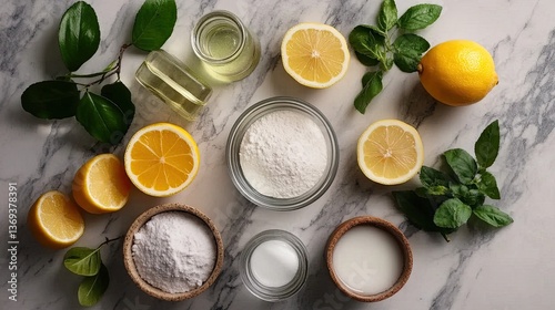 Fresh Ingredients for Natural Skin Care with Lemons and Herbs