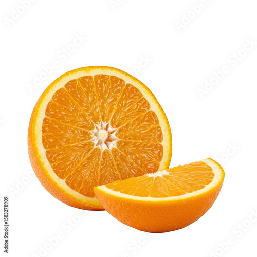 Fresh Juicy Orange Half and Wedge on Transparent Background