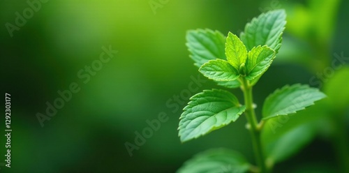 Fresh mint spearmint leaves growing on a green stem, mint, plants, spearmint