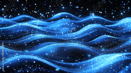 Fresh or frosty air flow set isolated on black background. Realistic vector illustration of abstract neon blue waves with sparkles. Cold wind blowing in winter. Magic power, light speed effect design