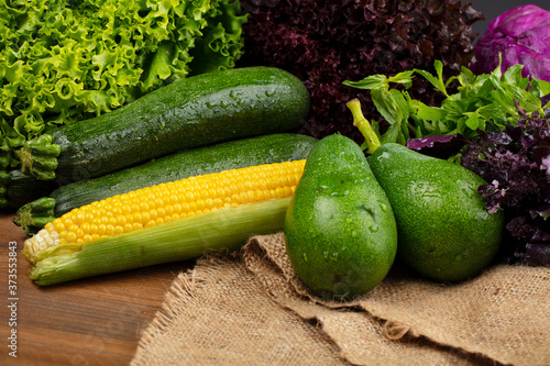 Fresh organic vegetables on wooden background. healthy eating concept. food background.
