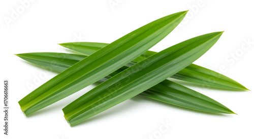Fresh pandan leaves with vibrant green color, used to add fragrance to dishes