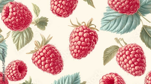 Fresh raspberries illustrated for food projects, showcasing ripe, natural fruit with rich texture and colors, ideal for culinary artwork, book illustration.