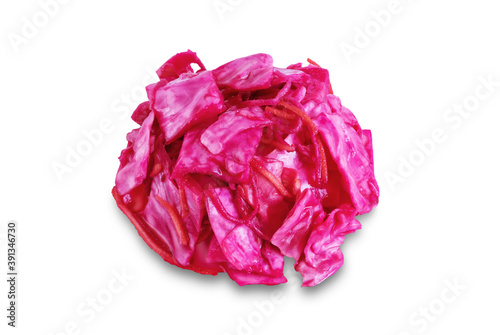 Fresh raw pickled beet cabbage with casrrot on a white isolated background.
