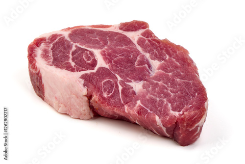 Fresh Raw Pork Neck Cut Isolated on White Background.