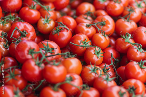 Fresh red cherry tomatoes, soft selective focus. Background with tomatoes