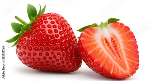 strawberry, fruit, fresh, red, slice, cut, sweet, healthy, food, diet, nourishment, berry, berry, organic, natural, ripe, snack, dessert, vegetarian, vegan, isolated, white background, delicious, refreshing, vibrant, tasty, raw, piece, produce, food photography, summer, whole, half, leaf, epicure