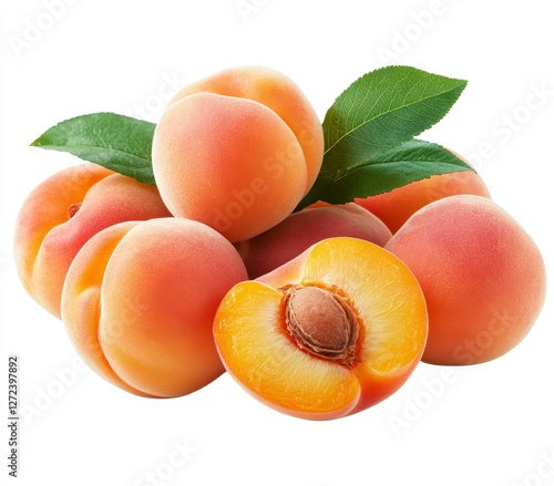 apricot, fruit, ripe, fresh, healthy, organic, food, gardening, agriculture, produce, summer, snack, vitamin, sweetness, natural, harvest, colourful, culinary, alimentary, dessert, vegetarian, diet, raw, sliced, tasty, yellow, orange, vibrant, juicy, seasonal, epicure, fresh fruit, group, whole, natural product, leaf, palm, closeup, isolated, background, favor, kitchen, cooking