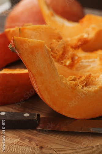 fresh, ripe, pumpkin, wood, table, vegetable, garden, orange, diet, vitamin, autumn, season, halloween, juice, soup, food, fruit, slice, healthy, squash, yellow, cut, raw, white, nourishment, vegetarian, sweet, closeup, baked, organic, meal, seed, seed