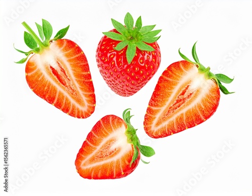 strawberry, fruit, fresh, red, isolated, white, background, ripe, berry, healthy, food, sweet, delicious, organic, natural, juicy, dessert, vitamin, summer, garden, agriculture, epicure, vegetarian, vegan, healthy eating, antioxidant, nourishment, macro, closeup, vibrant, bright, raw, ingredient, produce, natural food, plant, group, studio, nobody, cut, whole, single, dripped, diet, freshness, snack, sweet fruit