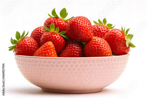 Fresh ripe strawberries arranged in pink bowl delicious red fruit healthy sweet treat full of vitamins and antioxidants