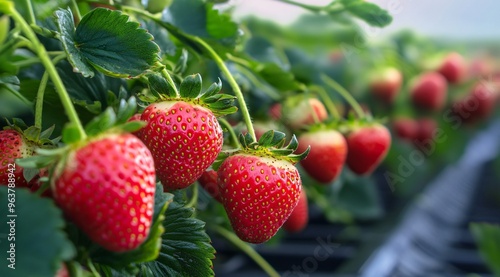 no people, photo, ripe, freshness, strawberry, leaf, red, horizontal, juicy, color image, healthy eating, food, fruit, plant, berry fruit, cultivated, harvesting, social issue, outdoors, agriculture, growth, us, food and drink, nature, farm, california, cut-out, well-being, closeup, antioxidant, in a row, sweet food, summer, gardening, grape, illustration, blueberry, bunch, bush, design