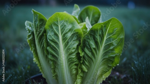Fresh Romaine Lettuce with Dew Drops - Close-Up