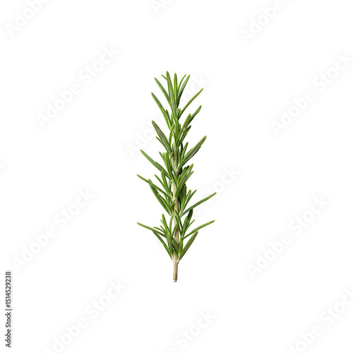 Fresh rosemary sprig standing vertically on white background