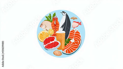 Fresh Seafood and Beverages Illustration for Culinary Inspiration