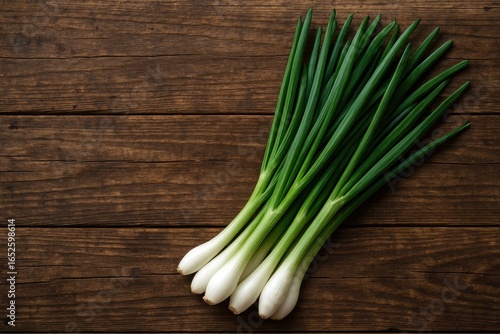 Fresh spring onions showcasing their nutritional benefits against a vintage wooden surface