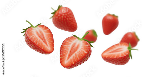 Fresh Strawberries – Whole and Halved Fruit Isolated on White Background
